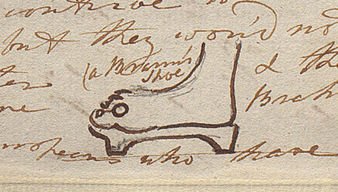 A Bramin’s shoe in Letter_068_EG_09-1806 [From Elizabeth Gwillim to her Sister, Henrietta “Hetty” Symonds James, September/October, 1806]